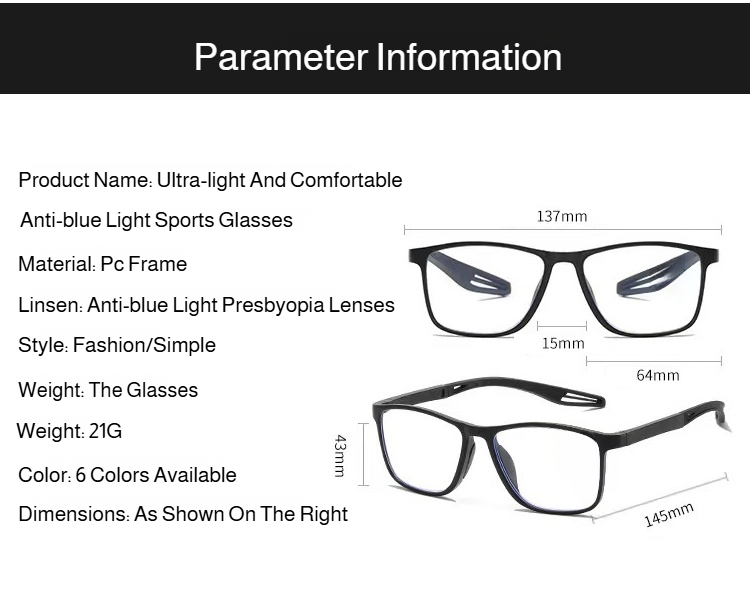 ● Lightweight and comfortable frame ensures all-day wearability, ideal for reading, working, or browsing on your phone or computer.