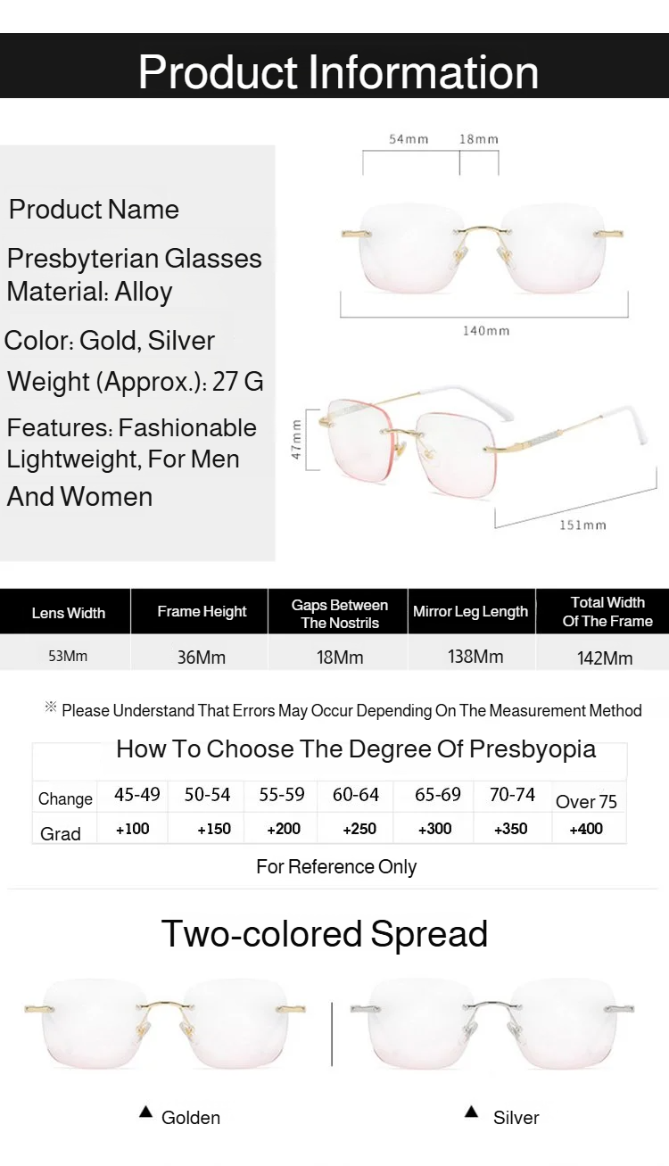 Lightweight and elegant rimless reading glasses for women