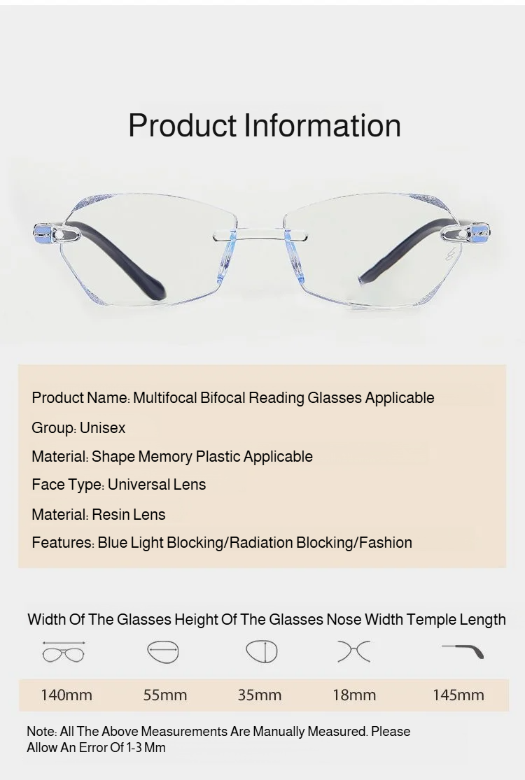 HD Frameless Blue Light Blocking Reading Glasses
